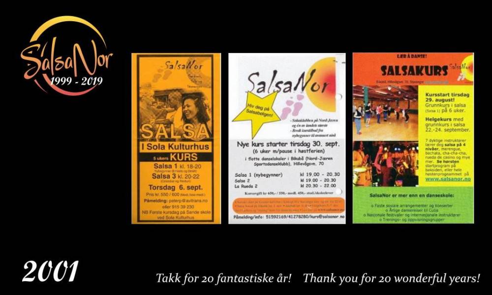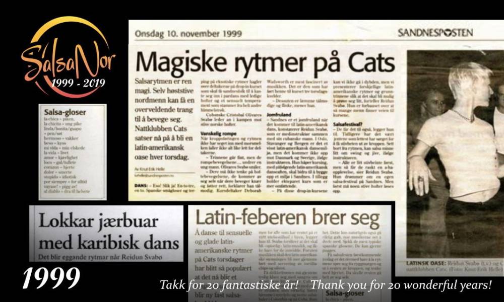 Los cursos comenzaron en mayo de 1999 en el centro comunitario Ganddal de Sandnes, con los bailes Merengue y Salsa en el programa. 30 participantes curiosos asistieron al primer curso, la prensa local estaba ansiosa por informar sobre este nuevo programa en Sandnes, y al cabo de pocos meses el programa se amplió para incluir una tarde de curso regular en Sandnes, otra en Stavanger, en el Nord-Jærens Sportsdanseklubbslokaler de Bikubå, y otra en el Sola kulturhus. A finales de año, unas 1.000 personas habían participado en uno o más cursos de danza, y el ambiente era internacional, positivo e integrador.